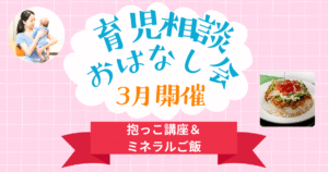 今回のテーマは、「抱っこ講座&ミネラルたっぷりママ向けご飯」でした。