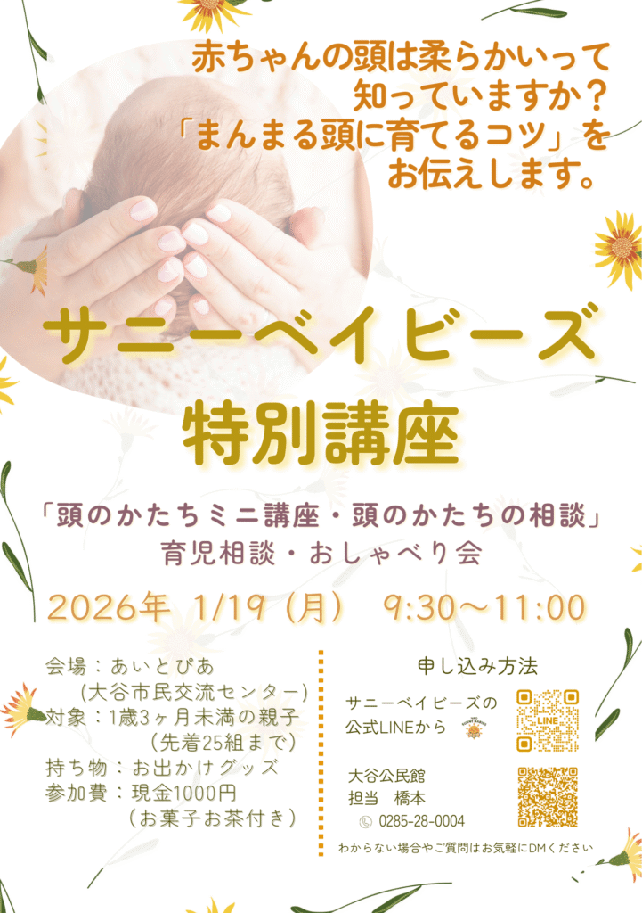 【2026年1月】産後ケアイベント:頭の形ミニ講座&相談会(栃木県小山市)